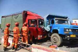 黃岡兩輛貨車(chē)發(fā)生車(chē)禍 致一車(chē)車(chē)身嚴重凹陷_進(jìn)行